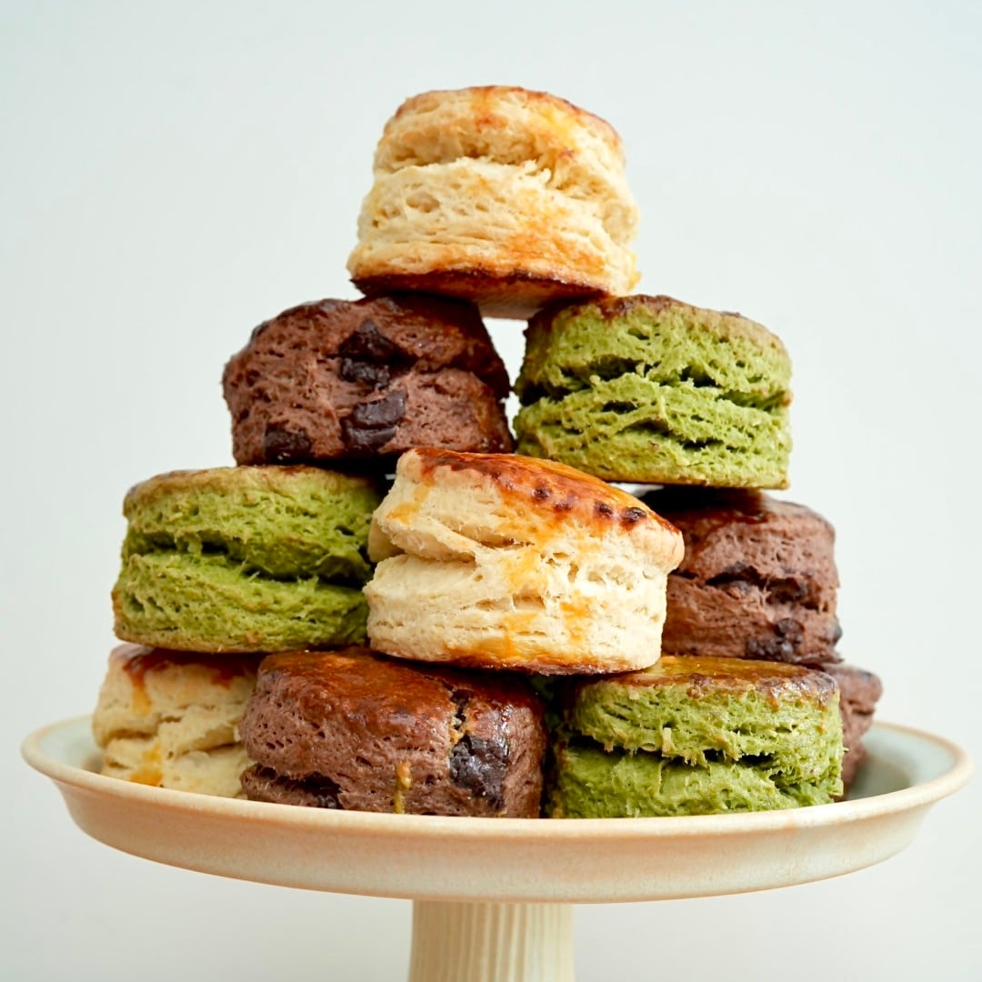 甘酒ミルクをプレーンとして、抹茶ココナッツ、八丁味噌の和ショコラスコーンの3種類。